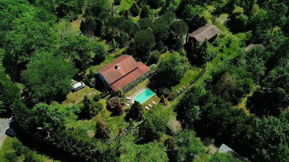 Mélange de style landais traditionnel et contemporain, la villa, situé au milieu d’un parc boisé de 2 hectares entièrement clôturé, fait 140m2.