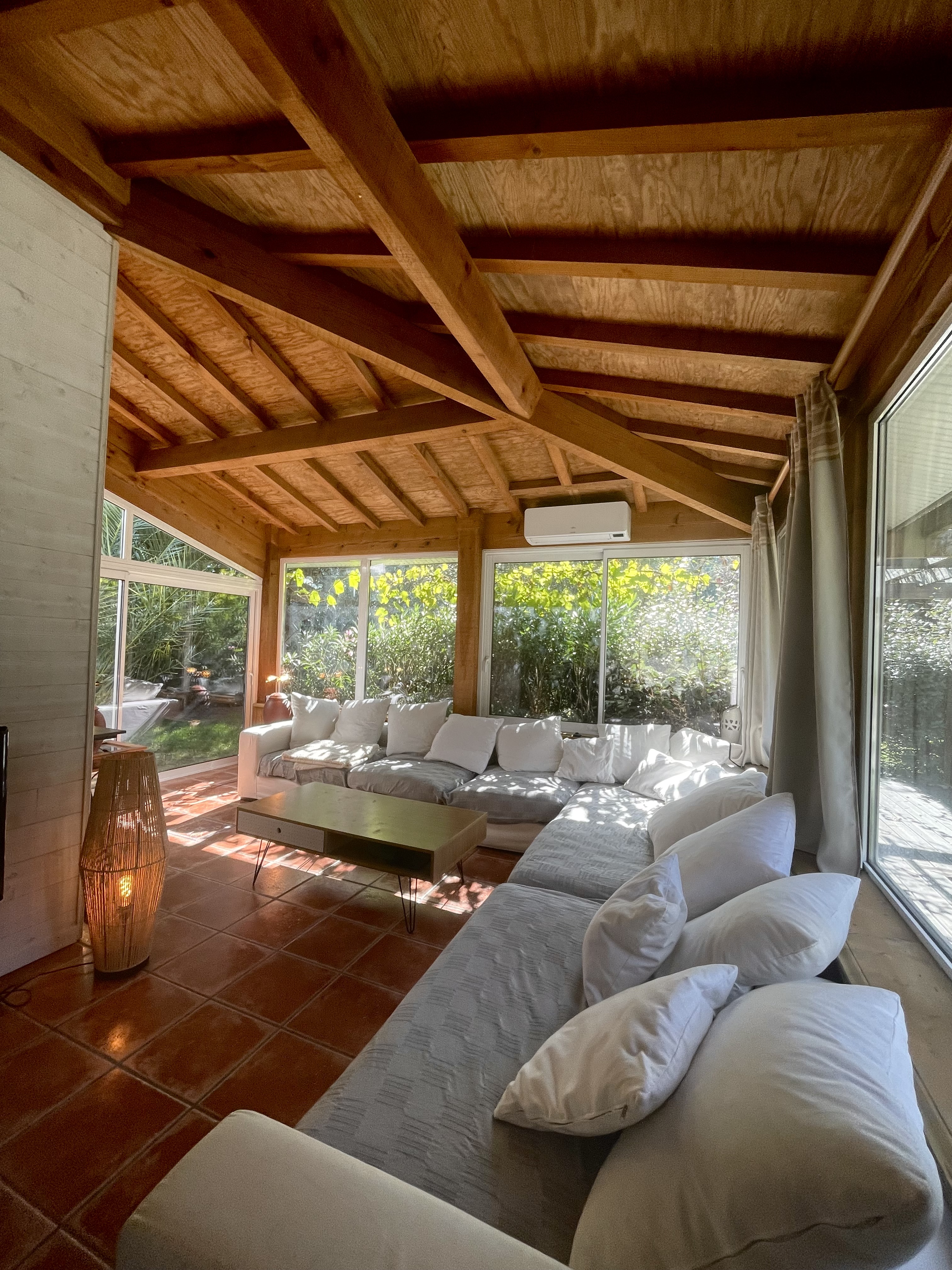 La villa accueille 3 chambres, une salle de bain et cuisine, un salon d’hiver et un salon d’été avec de grandes baies vitrées. Elle donne sur la piscine privée et une grande terrasse/jardin au milieu du domaine. La villa peut accueillir jusqu’à 6 personnes.